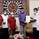 Banda Aceh – Ketua MPU AcehTgk. H. Faisal Ali mengalungi Kapolda Aceh Irjen Pol. Drs. Ahmad Haydar, S. E., M. M, dengan selempang muslim (rida’) saat berkunjung ke Kantor MPU Aceh, Rabu (18/08/2021).