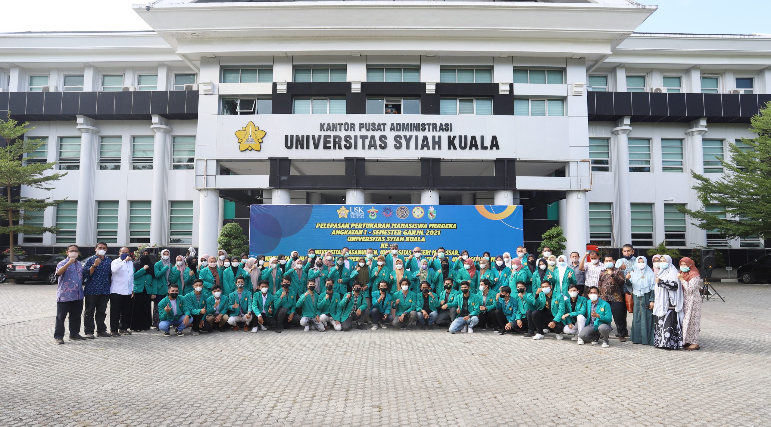 Banda Aceh – Sebanyak 370 mahasiswa Universitas Syiah Kuala (USK) mengikuti program Pertukaran Mahasiswa Merdeka Dalam Negeri (PMM-DN) secara daring dan luring. Dari jumlah tersebut, sebanyak 123 mahasiswa yang ikut secara luring dilepas oleh  Rektor USK Prof. Dr. Ir. Samsul Rizal, M.Eng., IPU. ASEAN.Eng di Halaman Kantor Pusat Administrasi USK. Selasa, (19/10/2021).