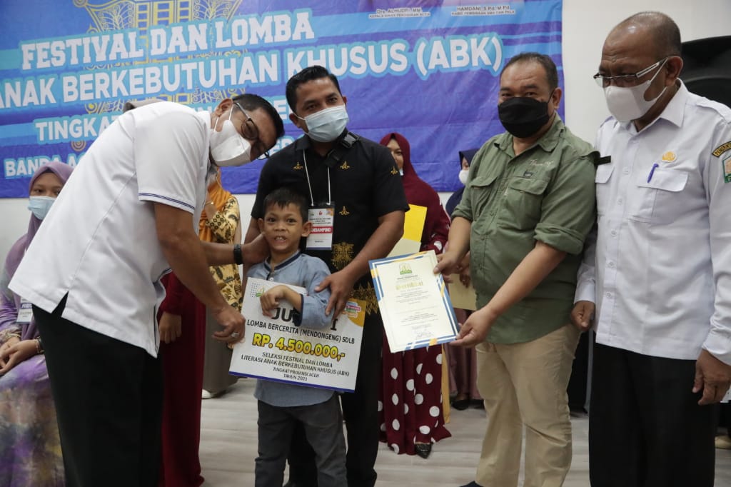 Hajri Safriani (SLB Negeri Al-Fansury) juara I, Riska Ananda (SLB Negeri Langsa) juara II, Ma’ad (SMALB Mutiara Louser) juara III, Anisa Salsabila (SLB Bukesra Banda Aceh) harapan I, Muhammad Rafly (SLB Negeri Aneuk Nanggroe) harapan II.