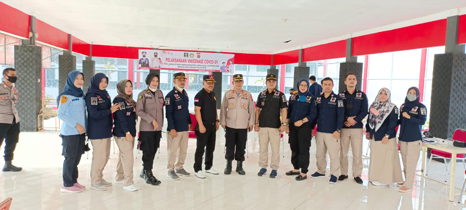 Banda Aceh – Ditresnarkoba Polda Aceh bersama Div Pas Kemenkumham Aceh Gelar vaksinasi massal di 3 lokasi, Sabtu (06/11/2021).