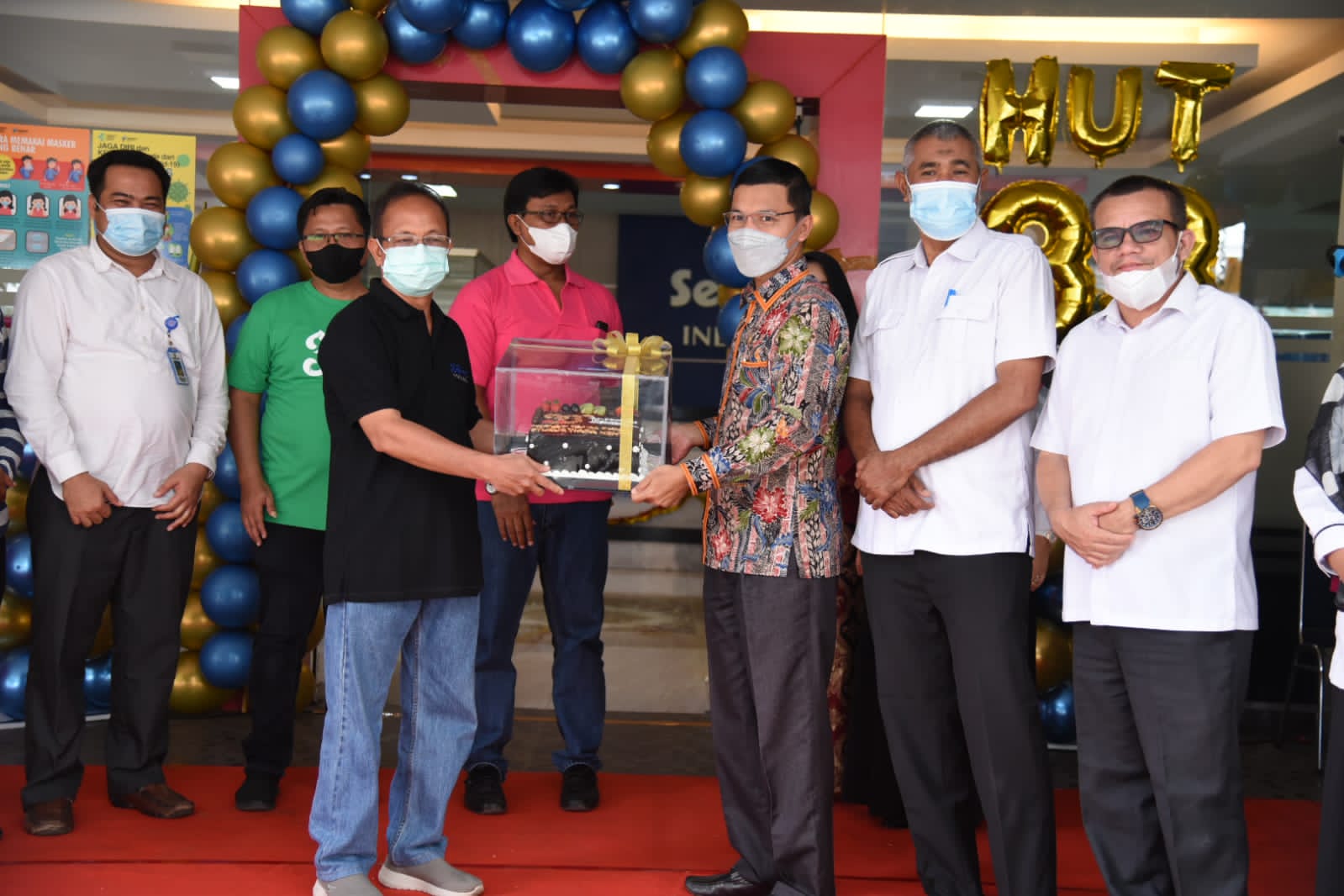 Dalam kunjungan itu, Ketua DPRK turut menyerahkan kue ulang tahun yang diterima oleh Pemimpin Perusahaan Serambi Indonesia Mohammad Din.