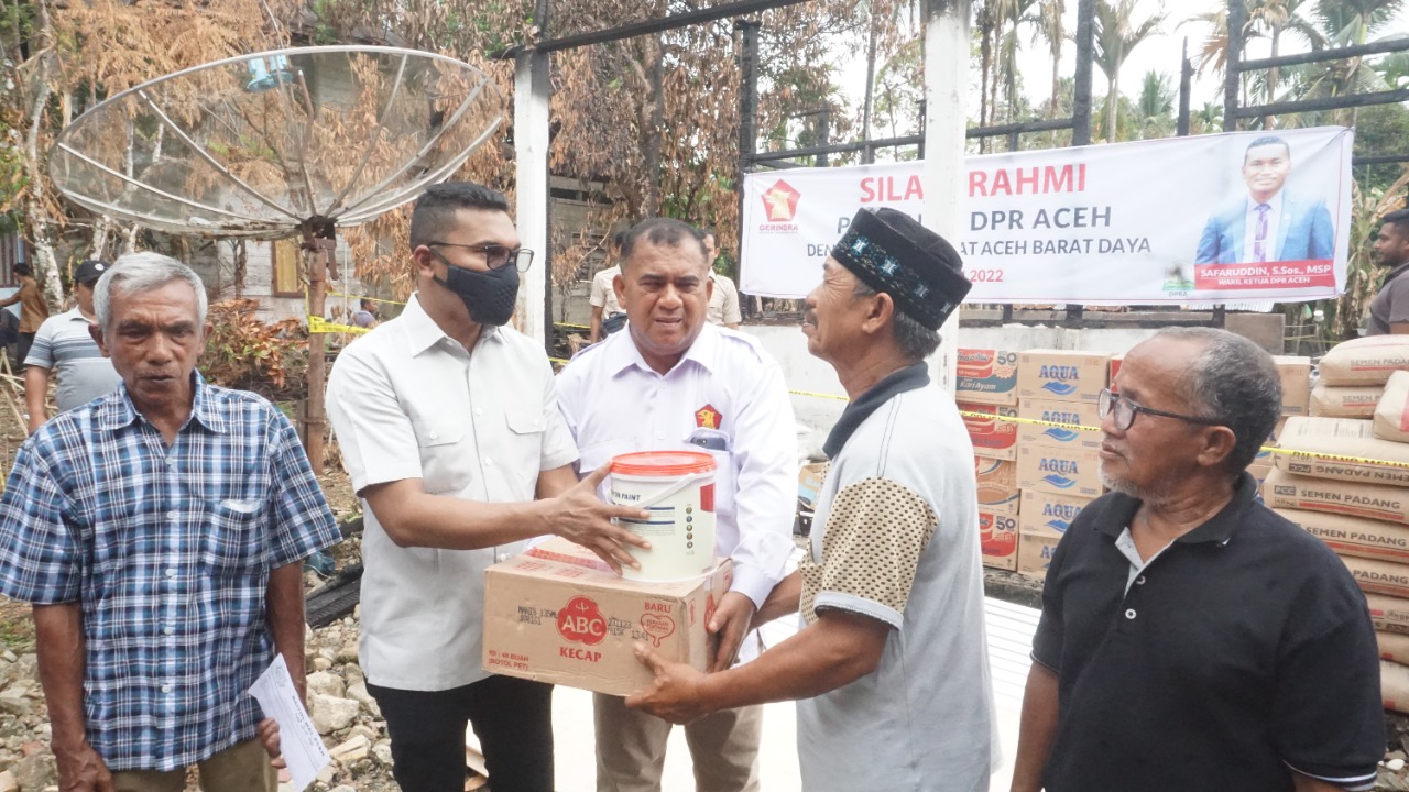 Aceh Barat Daya – Wakil Ketua Dewan Perwakilan Rakyat (DPR) Aceh, Safaruddin, menyalurkan bantuan tanggap darurat bagi korban kebakaran di Desa Ladang Neubok, Kecamatan Jeumpa, Kabupaten Aceh Barat Daya (Abdya), Rabu (9/2/2022).