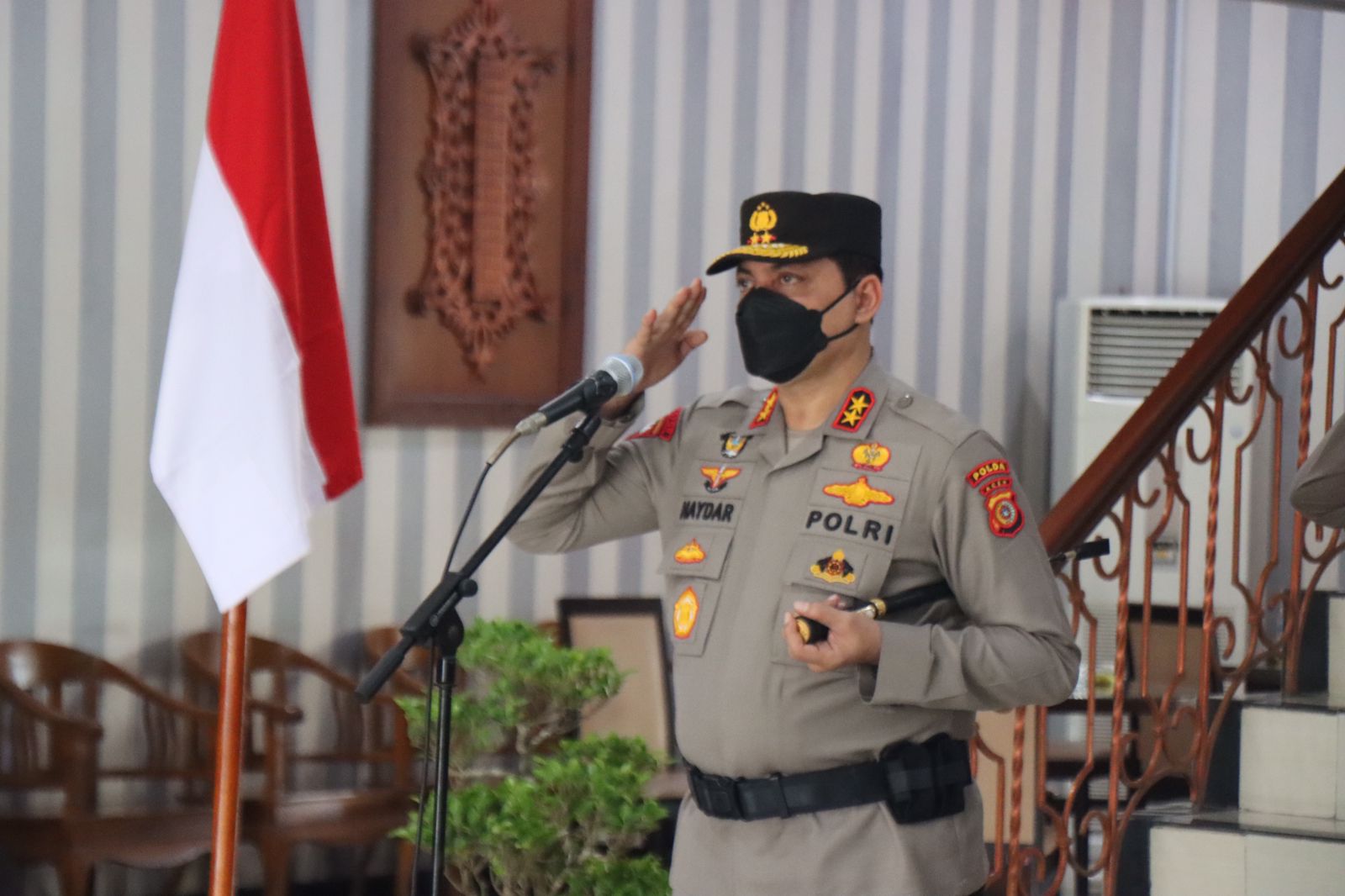Banda Aceh – Kapolda Aceh Irjen Pol. Drs. Ahmad Haydar, S. H., M. M, menjadi Inspektur Upacara (Irup) Pemuliaan Pataka Polda Aceh ” Machdum Sakti” yang berlangsung di Lobby Mapolda Aceh, Rabu (22/6/2022) pagi.