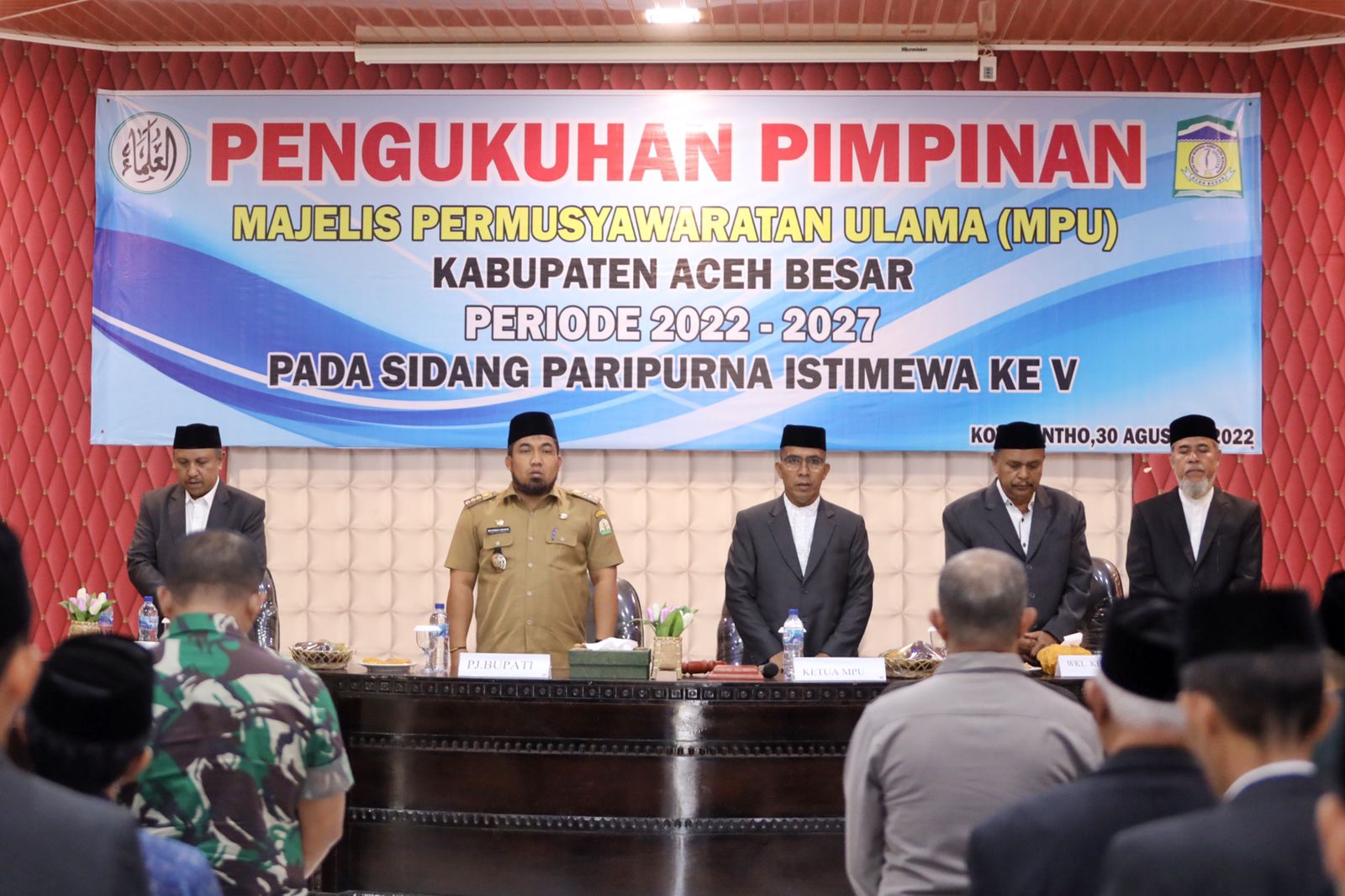 Penjabat (Pj) Bupati Aceh Besar Muhammad Iswanto menghadiri pengukuhan Pimpinan MPU Aceh Besar, Selasa (30/08/2022). Foto : Humas Pemkab Abes.