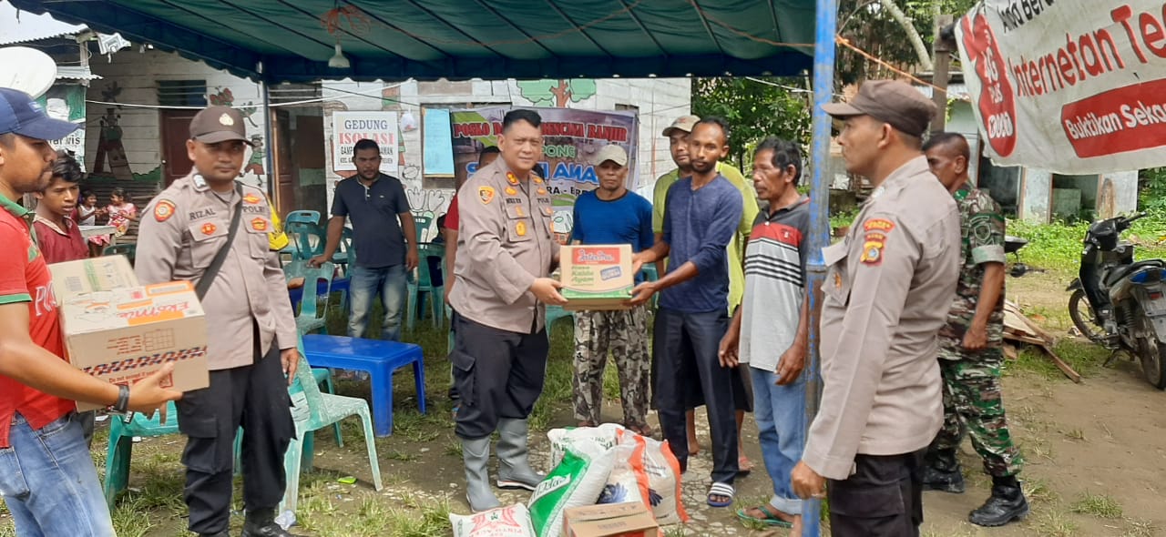 Didampingi Kapolsek Gandapura Iptu Faisal Saputra, Kapolres Bireuen Melihat Langsung Kondisi Masyarakat Pengungsi