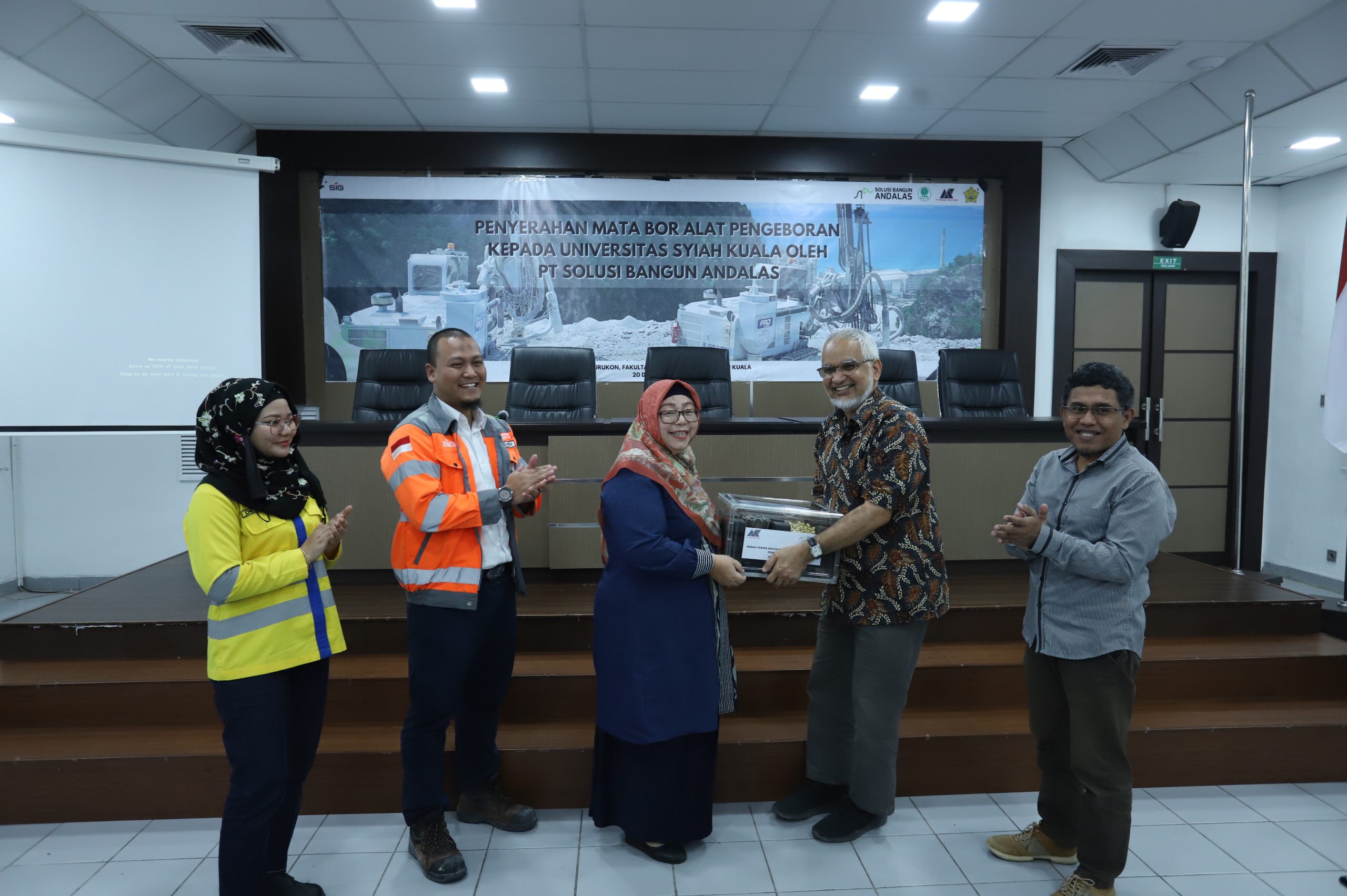 Banda Aceh – Program studi Teknik Pertambangan Universitas Syiah Kuala (USK) menerima mata bor untuk pengeboran dari PT Solusi Bangun Andalas (SBA). Serah terima ini berlangsung di Balai Keurukon, Fakultas Teknik.