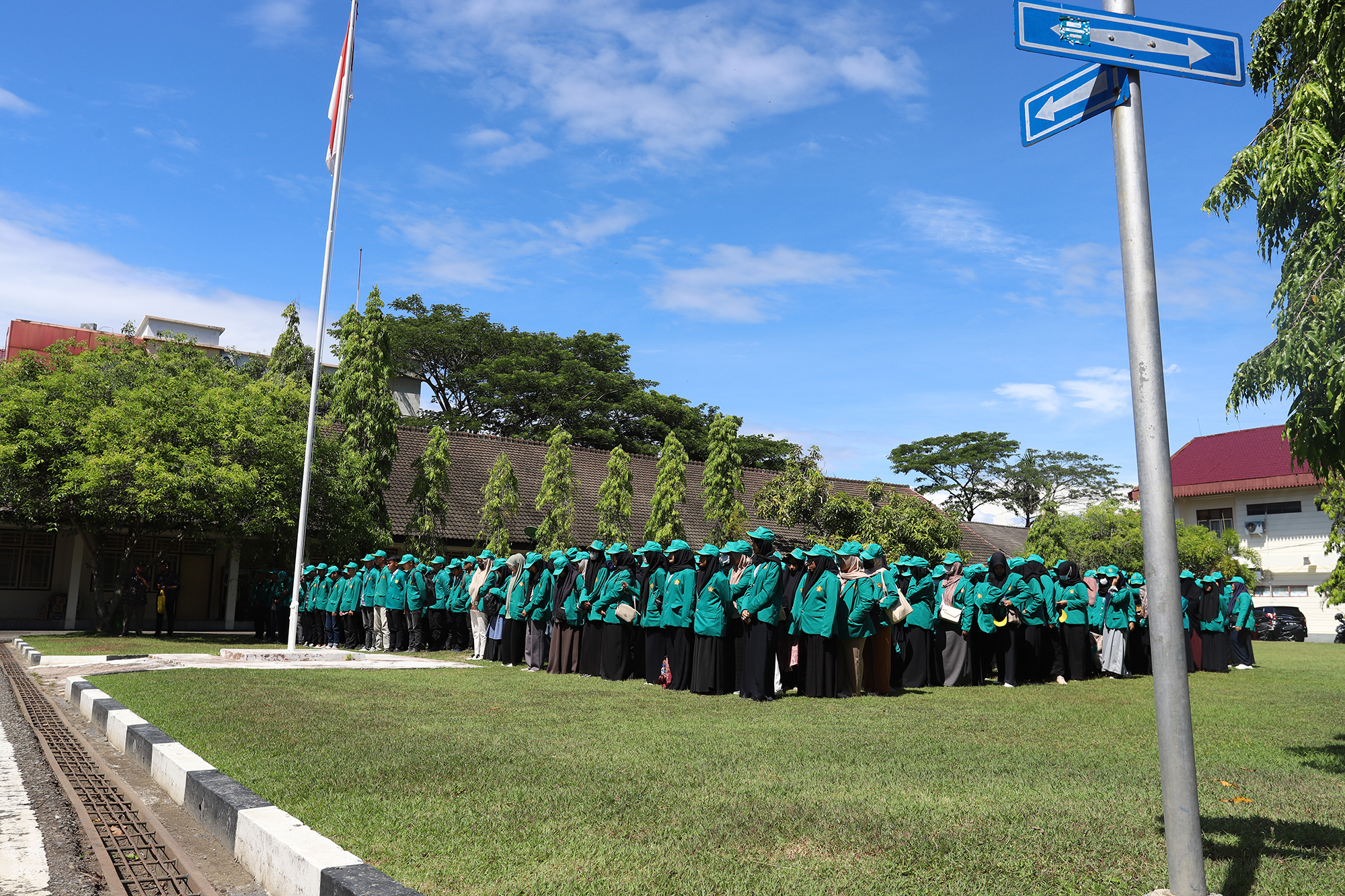 Mahasiswa KKN menghadiri acara serah terima Mahasiswa KKN Reguler periode XXIII dan Kolaborasi tahun 2023 di halaman kantor Bupati Pidie. Foto: Humas/USK.