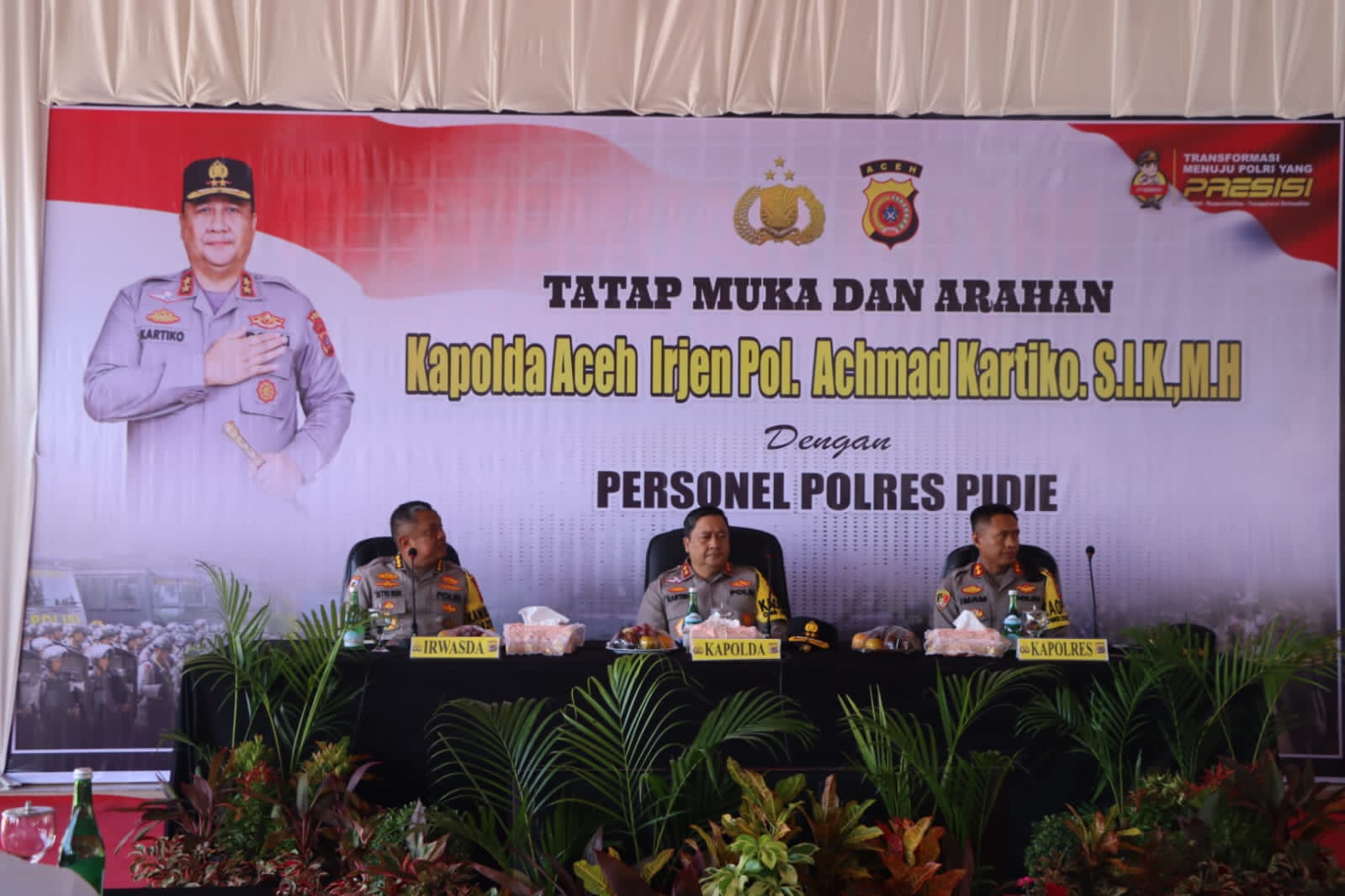 Sigli — Kapolda Aceh Irjen Achmad Kartiko mengatakan, sesuai amanat undang-undang personel Polri memiliki kewenangan dan tupoksi sebagai alat negara, yaitu sebagai pelindung, pelayan, dan pengayom masyarakat, serta pemelihara kamtibmas dan penegakan hukum.