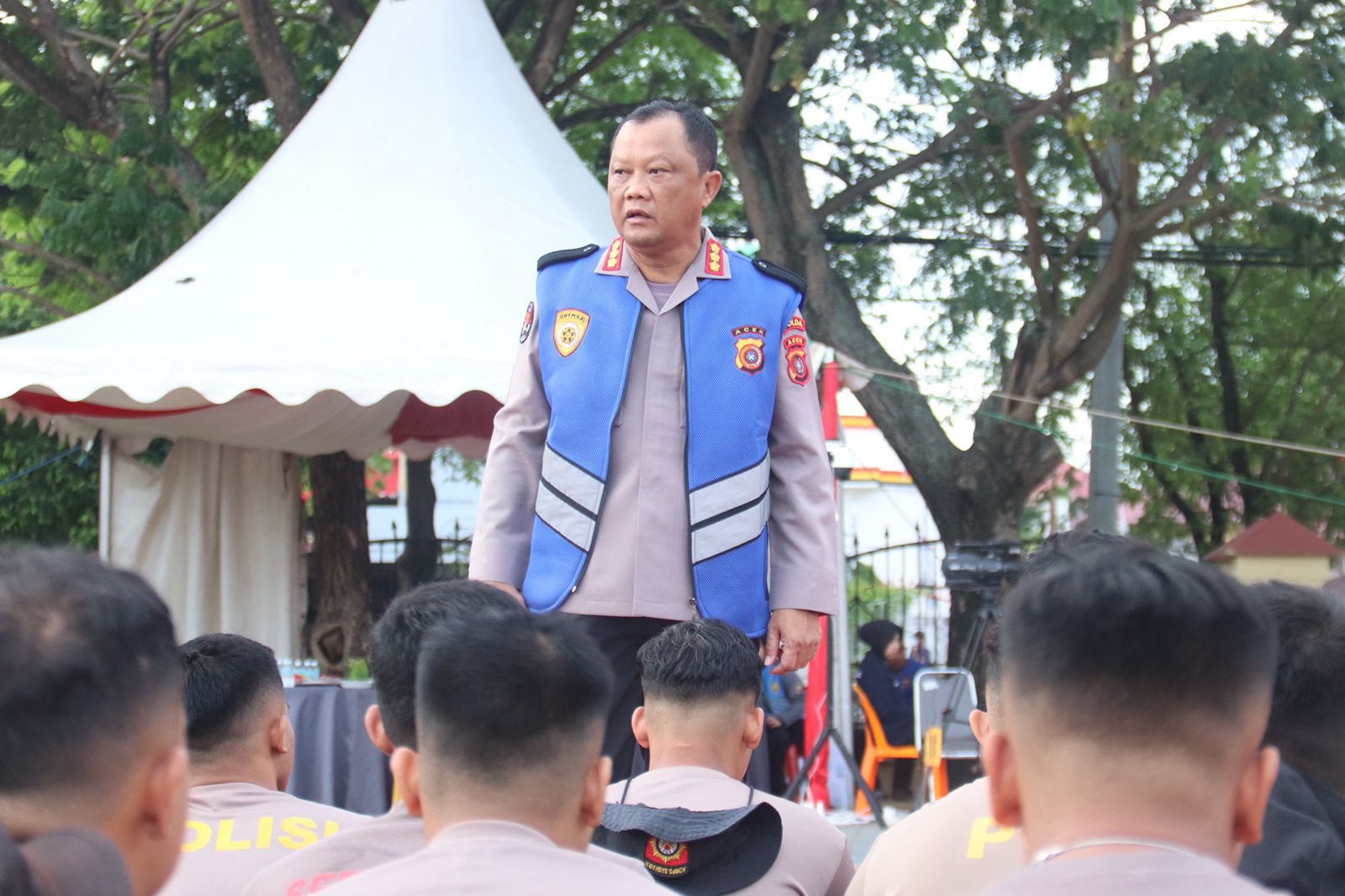 Kabid Humas Polda Aceh Kombes Pol. Joko Krisdiyanto, S. I. K, selaku Ketua Tim Jasmani memberikan arahan kepada calon Bintara Polri Tahun Anggaran 2024, pada Selasa 11 Juni 2024. Foto: Humas/Polda Aceh.