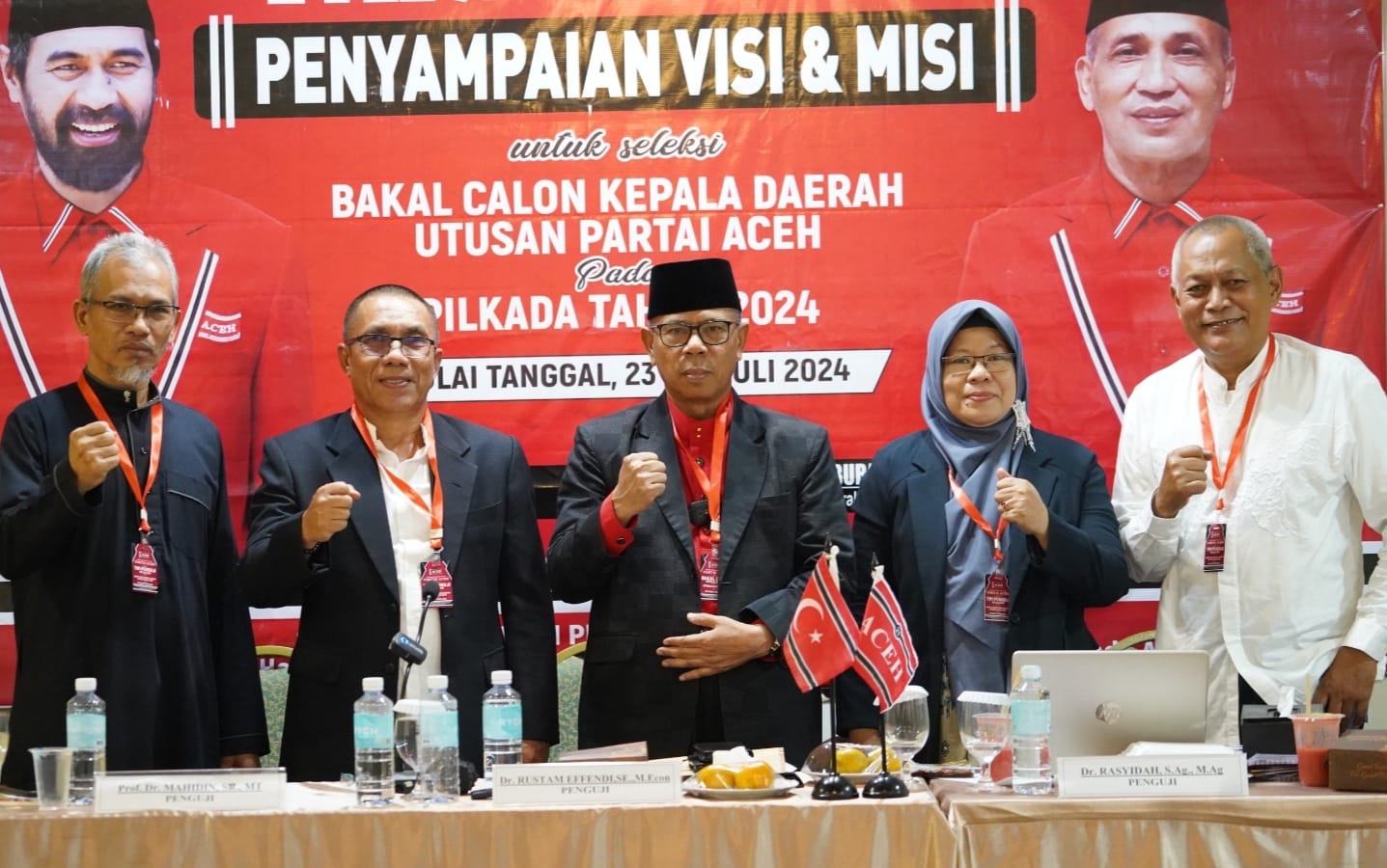 Banda Aceh – Dr. Tgk. H. A. Mufakhir Muhammad MA, salah seorang putra dari mantan Gubernur GAM Pidie (alm. Tgk. H. Muhammad Arief) hadir memenuhi undangan tim pansel Partai Aceh untuk menyampaikan visi dan visi serta uji baca Al-Qur’an sebagai bakal calon Wakil Gubernur Aceh pendamping calon Gubernur Aceh Muzakir Manaf atau Mualem yang akan diusung oleh Partai Aceh.