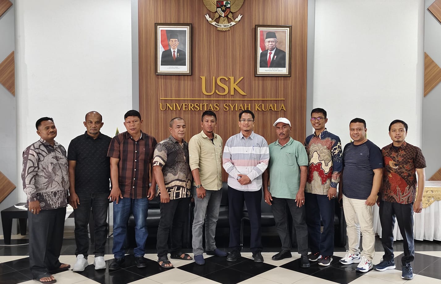 Universitas Syiah Kuala (USK) menerima kunjungan audiensi dari Forum Komunikasi Keuchik di kabupaten Pidie dalam rangka Konsultasi Ketahanan Pangan Gampong, yang berlangsung di Ruang VIP AAC Dayan Dawood, Senin (5/7/2024). Foto: Humas/USK.