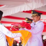 Kota Jantho – Prosesi penurunan bendera merah putih dalam rangka memperingati Hari Ulang Tahun (HUT) ke-79 Kemerdekaan Republik Indonesia (RI) di Lapangan Bungoeng Jeumpa, Kota Jantho, Kabupaten Aceh Besar, berjalan dengan lancar dan tertib meskipun hujan mengguyur selama pelaksanaanya, Sabtu (17/8/2024) sore.