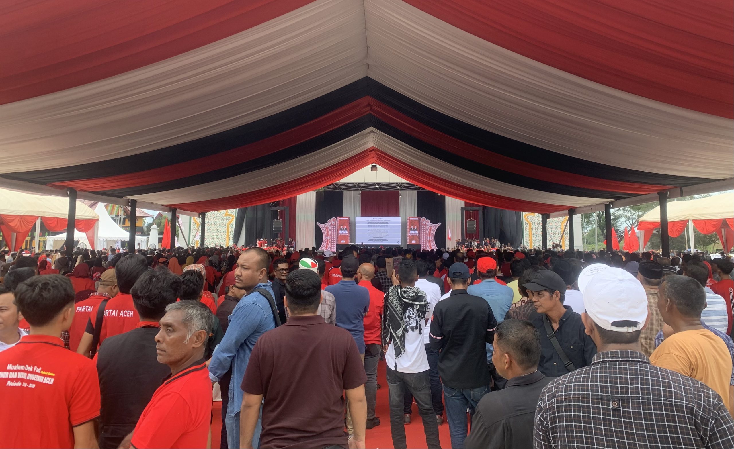 Deklarasi berlangsung di Taman Sulthanah Safiatuddin, Banda Aceh, Minggu (25/8/2024). Deklarasi tersebut turut dihadiri seribuan kader atau simpatisan Partai Aceh dari kabupaten/Kota.