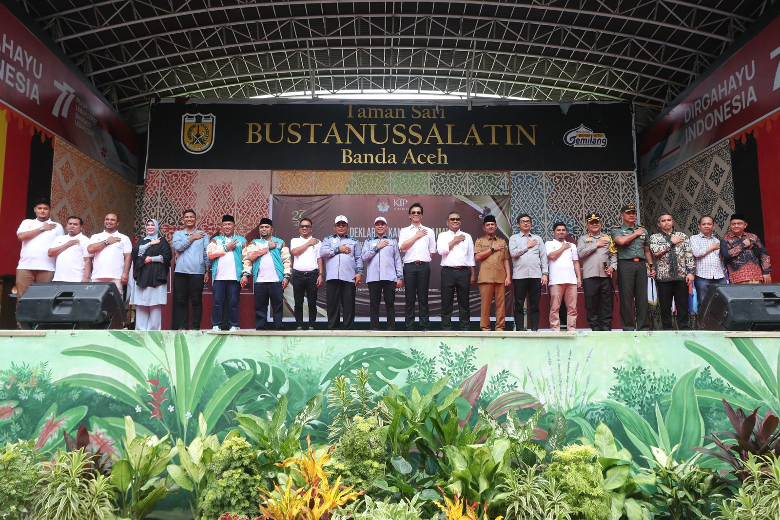 Komisi Independen Pemilihan (KIP) Kota Banda Aceh menggelar Deklarasi Kampanye Damai Pemilihan Wali Kota dan Wakil Wali Kota Banda Aceh 2024 di Taman Bustanussalatin (Taman Sari), Selasa, 24 September 2024. Foto: Prokopim Setdako Banda Aceh