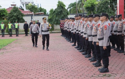 Apel gelar pasukan ini ditandai dengan pemasangan pita secara simbolis kepada perwakilan serta pemeriksaan pasukan oleh Kapolres Aceh Utara yang didampingi Komandan Apel.