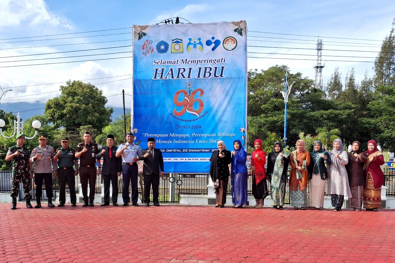 Kota Jantho – Pemerintah Kabupaten (Pemkab) Aceh Besar menggelar upacara peringatan Hari Ibu ke-96 tahun 2024, di Lapangan Upacara Kantor Bupati Aceh Besar, Kota Jantho, Senin (23/12/2024).