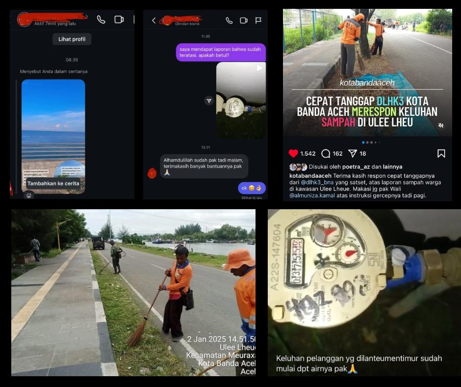 Menindaklanjuti laporan warga melalui akun Instagram pribadi Penjabat Wali Kota Banda Aceh @almuniza.kamal serta media sosial lainnya, permasalahan air PDAM yang macet dan tumpukan sampah di kawasan wisata Ulee Lheue langsung ditangani petugas terkait.
