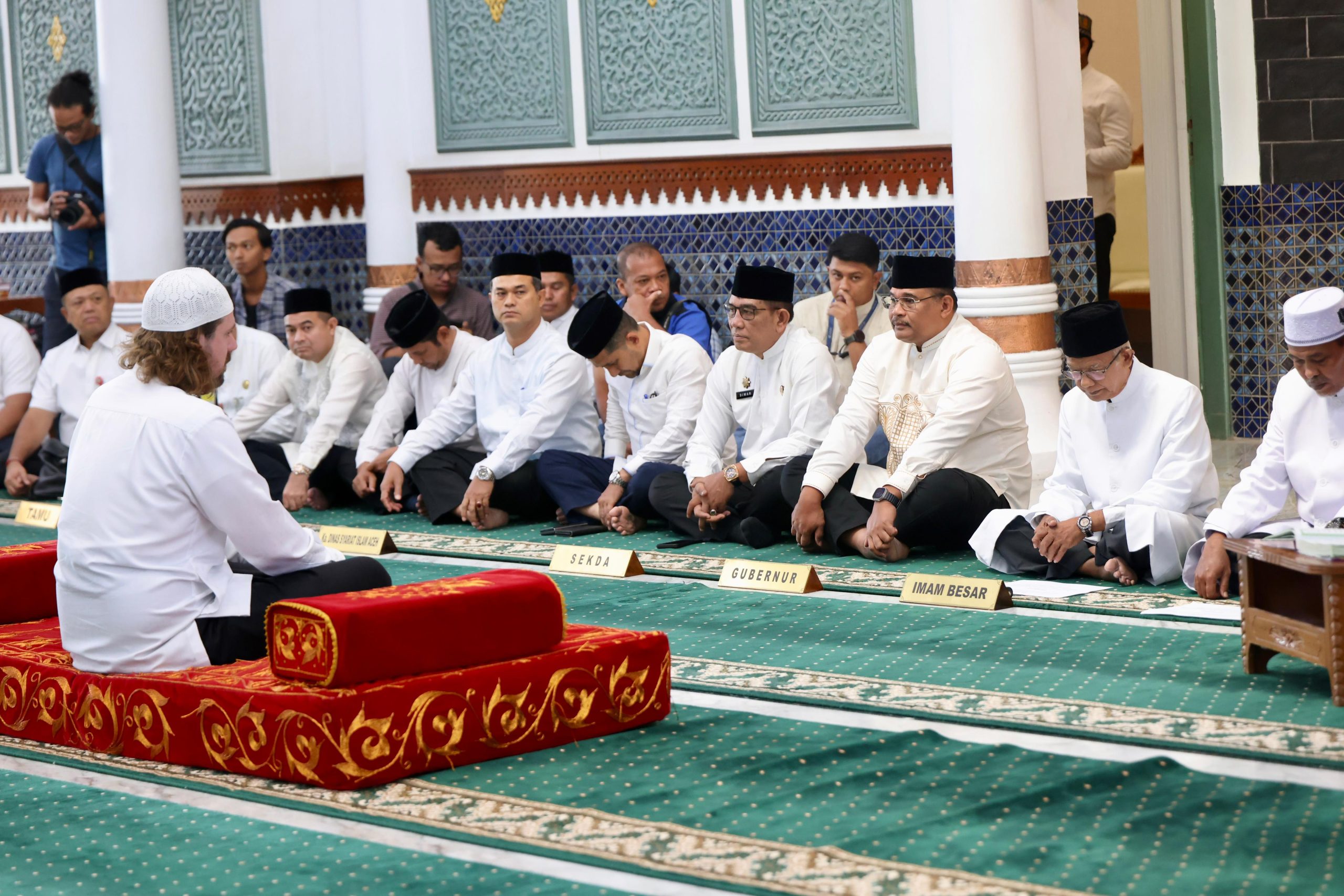 Banda Aceh – Pj Gubernur Aceh, Safrizal ZA menyaksikan seorang warga asal Australia William Robert Mackay (29) mengucapkan dua kalimat syahadat atau memeluk Islam