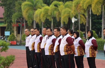 Apel pagi di Lapangan Mapolda Aceh dihadiri Irwasda, Para PJU, Pamen, Pama, Bintara dan ASN Polda Aceh.