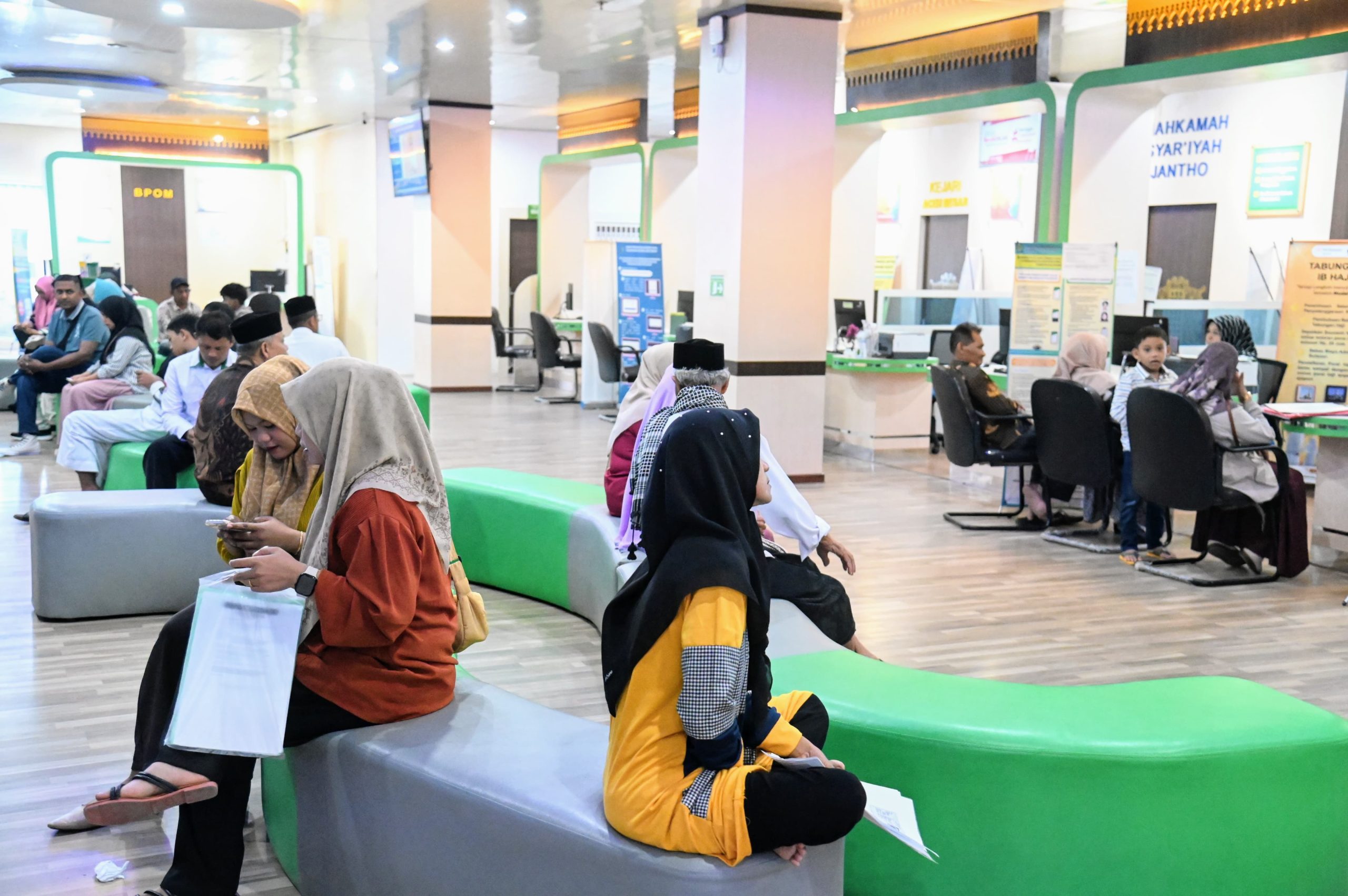 Masyarakat mengantri menunggu nomor panggilan untuk keperluan berbagai dokumen di Mal Pelayanan Publik (MPP), Lambaro, Kecamatan Ingin Jaya, Aceh Besar, Rabu (09/04/2025). FOTO: MC ACEH BESAR.