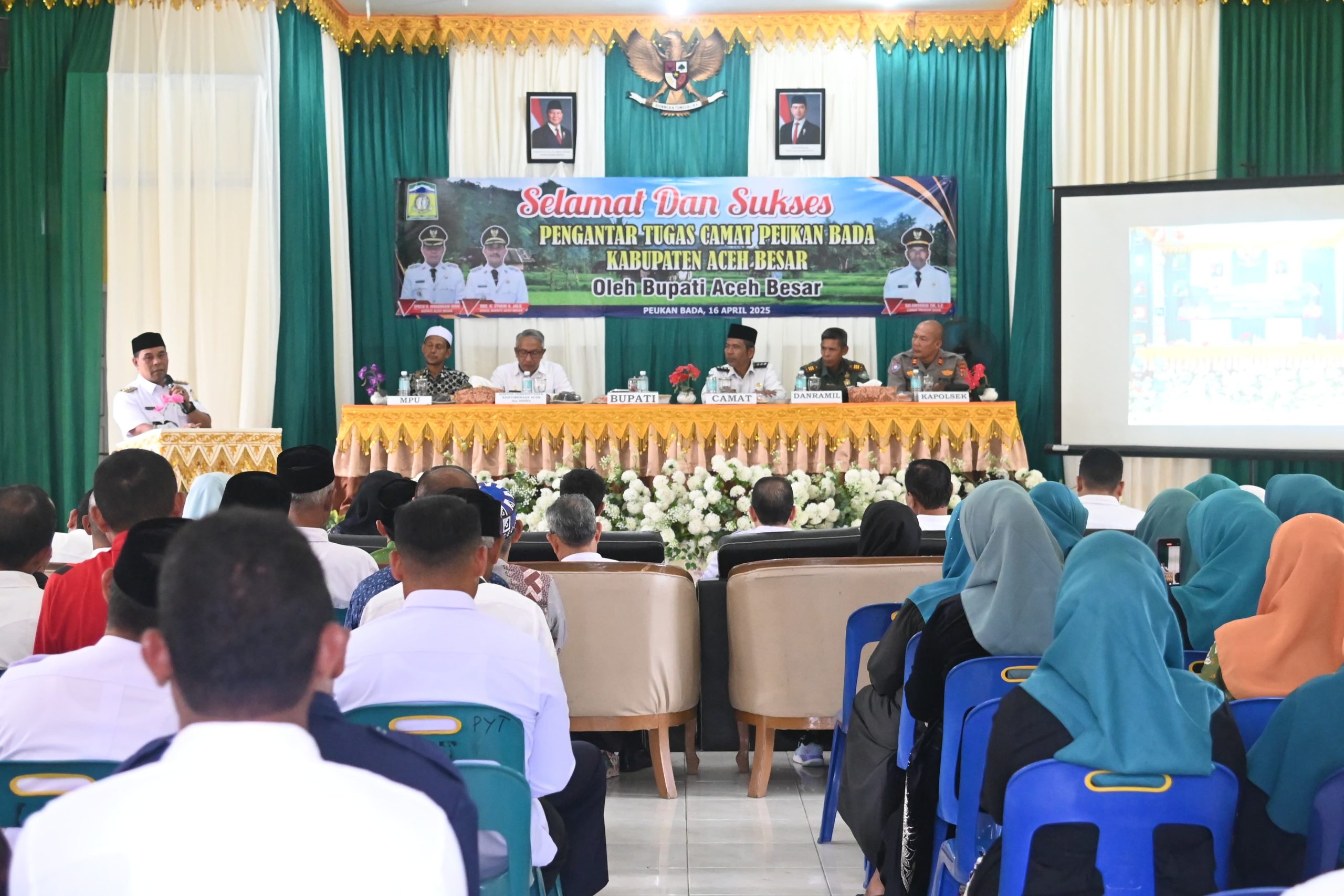 “Saya hadir di sini bukan sebagai tamu, tapi sebagai pemimpin Aceh Besar yang ingin menyerahkan langsung amanah kepada Camat Peukan Bada. Dengan legalitas yang kini Anda miliki, Anda berhak dan wajib membina, mengawasi, serta mendukung kerja-kerja imum mukim, keuchik, dan seluruh aparatur gampong,” ujar Bupati dengan keyakinan penuh.