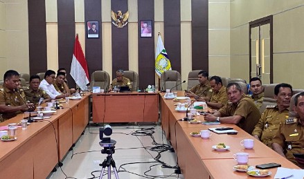 Asisten I Sekdakab Aceh Besar Farhan AP mengikuti Rapat Koordinasi Akselerasi Pembentukan Koperasi Desa Merah Putih di ruang Rapat Kantor Bupati Aceh Besar, Kota Jantho, Senin (19/5/2025). FOTO/ PROKOPIM PEMKAB ACEH BESAR