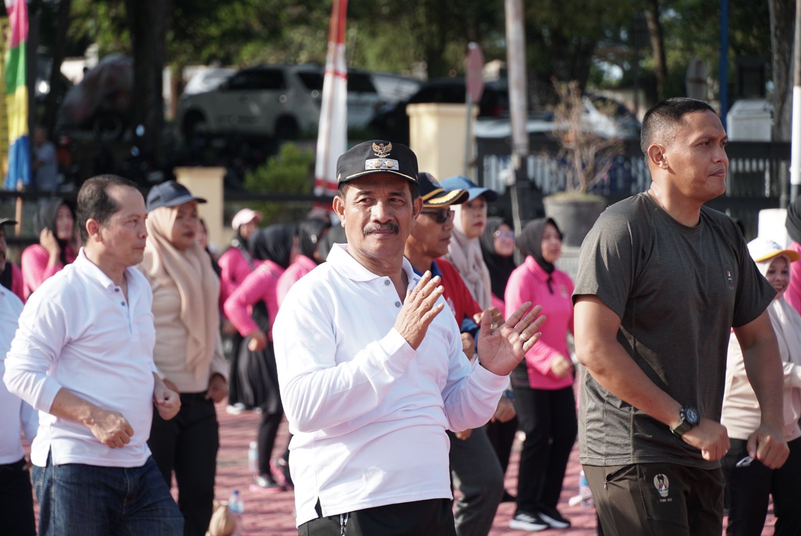 Aceh Besar – Dalam rangka menyemarakkan Hari Bhayangkara ke-79 tahun 2025, Wakil Bupati Aceh Besar Drs Syukri bersama Plt Sekda Bahrul Jamil S.Sos M.Si dan unsur Forkopimda, mengikuti olahraga bersama jajaran Polres Aceh Besar di Kota Jantho, Sabtu (28/06/2025).