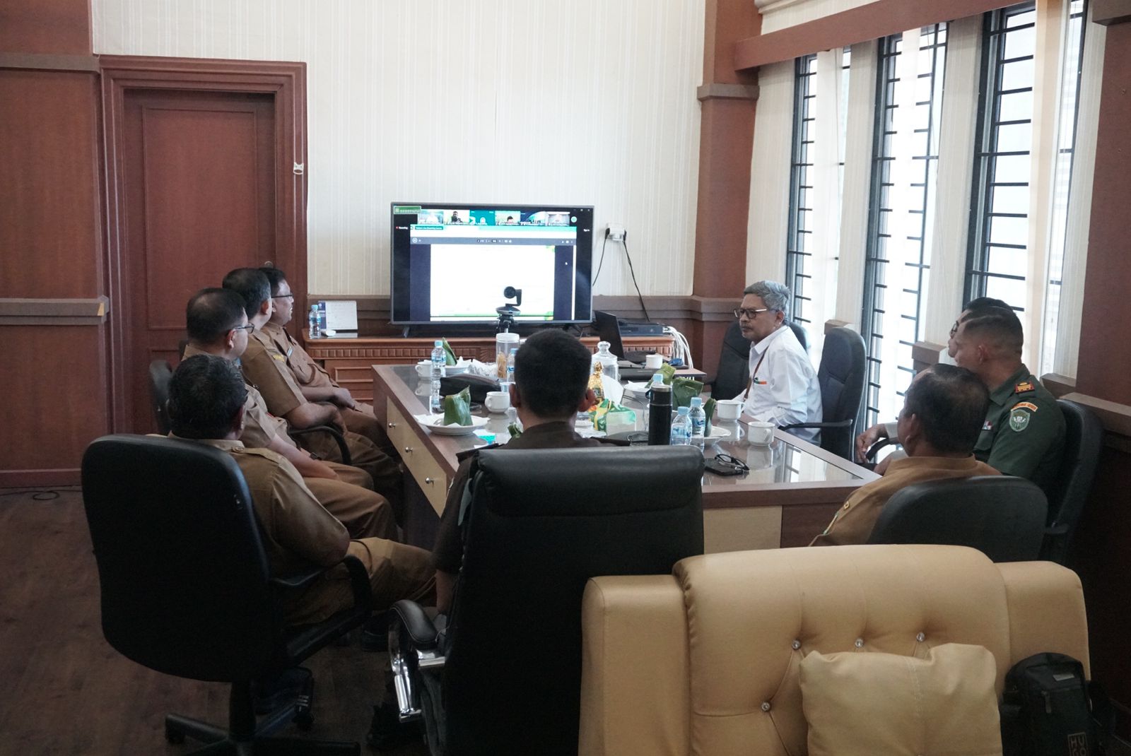 Asiaten II Sekdakab Aceh Besar HM Ali S.Sos MSi mengikuti Rakor Inflasi bersama Kemendagri di Ruang Rapat Sekda Aceh Besar, Kota Jantho, Selasa (29/07/2025). Foto: MC Aceh Besar.
