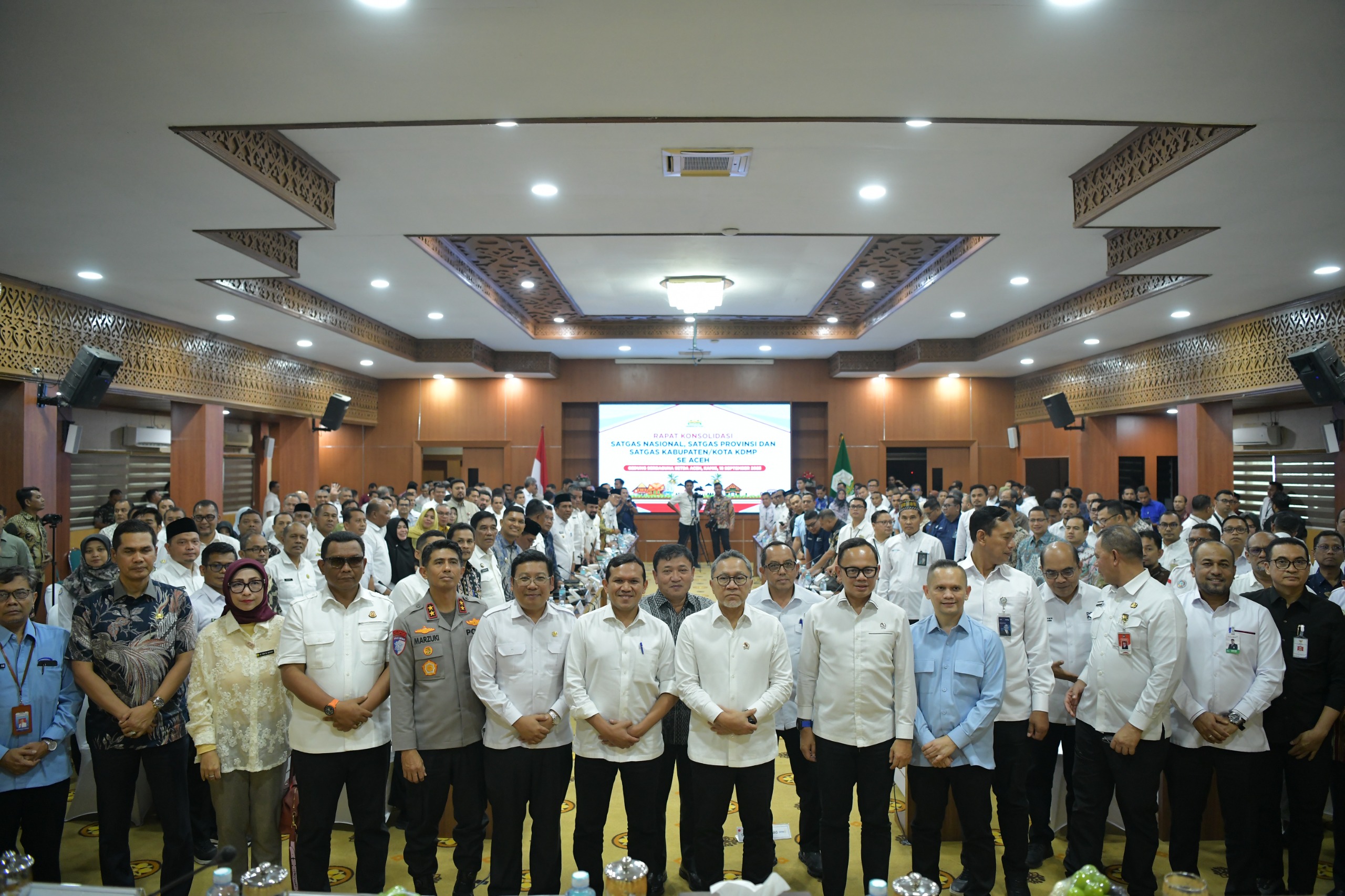 Banda Aceh – Wakil Gubernur Aceh, H. Fadhlullah, SE., memimpin rapat koordinasi Satgas Nasional, Satgas Provinsi, dan Satgas Kabupaten/Kota Koperasi Desa Merah Putih (KDMP) se-Aceh di Gedung Serbaguna Setda Aceh, Kamis (18/9/2025). Pertemuan ini menegaskan peran KDMP sebagai instrumen strategis dalam pemerataan ekonomi dan penguatan ketahanan pangan.