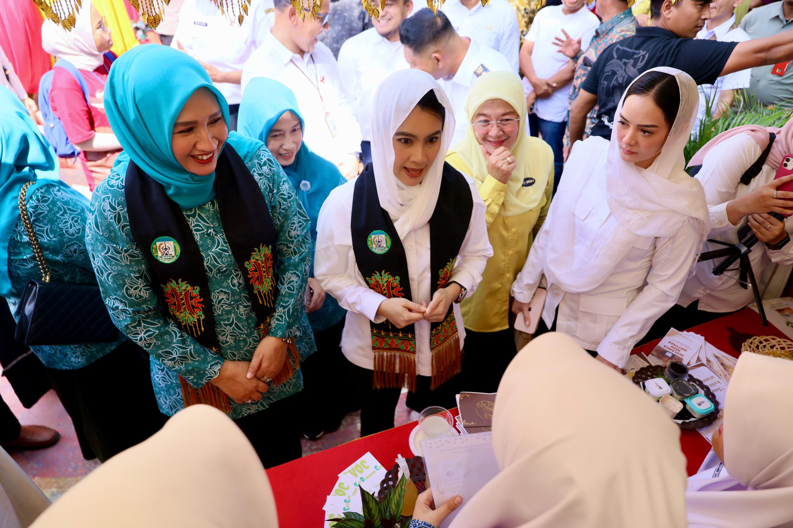 Banda Aceh – Ketua Tim Penggerak PKK Aceh, Marlina Muzakir, mendampingi Wakil Menteri Kependudukan dan Pembangunan Keluarga, Isyana Bagoes Oka dalam acara peresmian SMA 10 Fajar Harapan Banda Aceh menjadi Sekolah Unggul Garuda Transformasi, di sekolah tersebut pada Rabu, (8/10/2025).