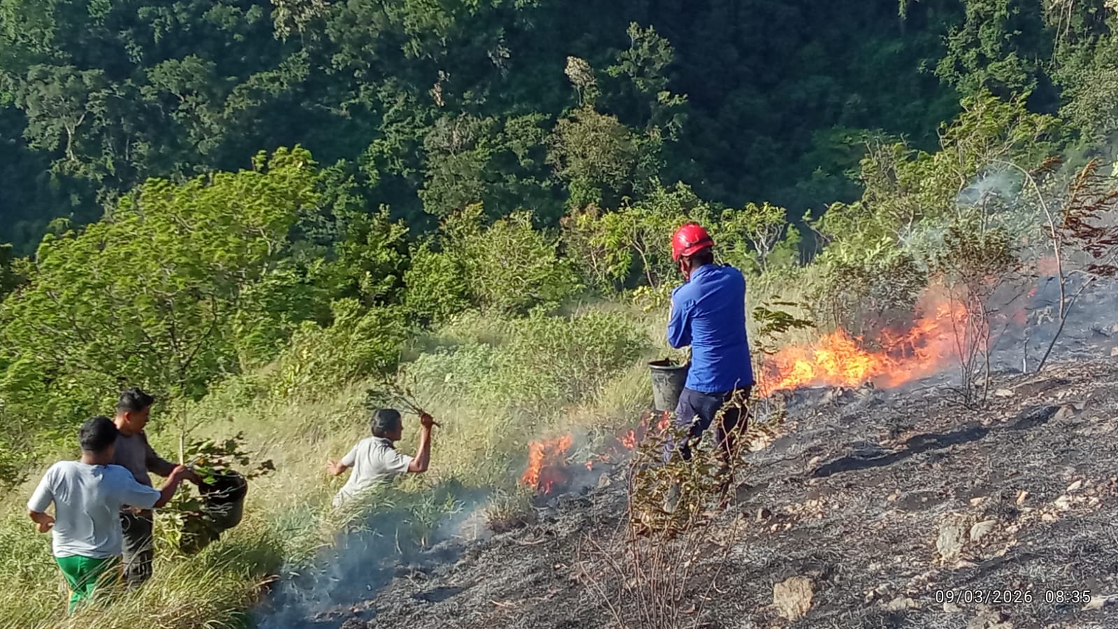 “Kawasan yang terbakar berada di lereng perbukitan yang cukup terjal. Vegetasi di lokasi didominasi ilalang dan pepohonan yang mudah terbakar sehingga api cepat merambat,” ujarnya.