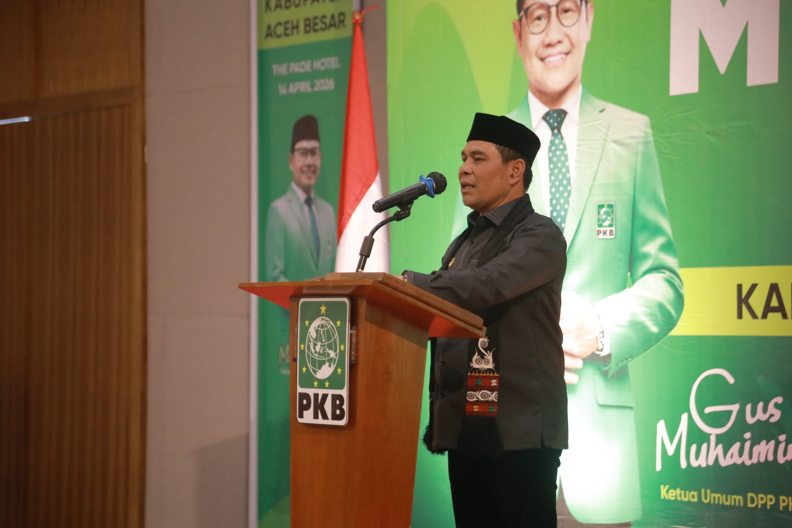 Aceh Besar – Bupati Aceh Besar, H. Muharram Idris atau yang akrab disapa Syech Muharram, menghadiri Musyawarah Cabang (Muscab) Partai Kebangkitan Bangsa (PKB) Kabupaten Aceh Besar yang berlangsung di The Pade Hotel, Lampeunerut, kecamatan Darul Imarah, Aceh Besar, Selasa (14/4/2026).