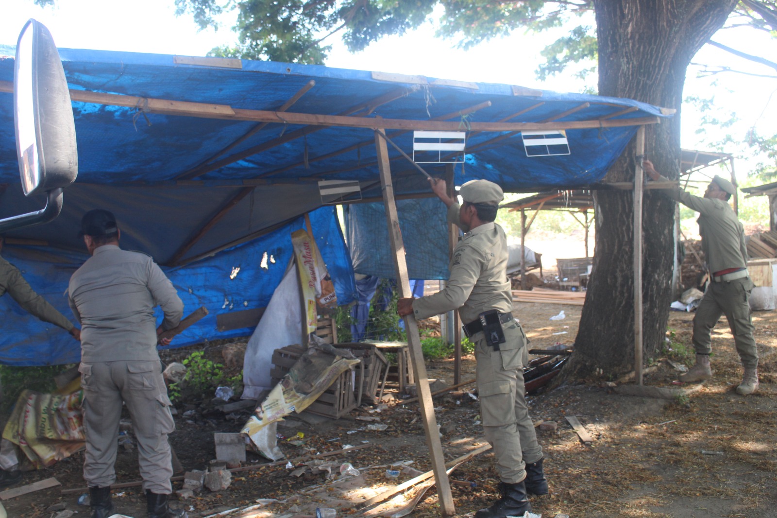 Namun demikian, terdapat pula beberapa pedagang yang mengajukan permohonan penundaan. Terhadap hal tersebut, petugas memberikan toleransi selama satu hari dengan syarat menandatangani surat pernyataan kesanggupan untuk membongkar secara mandiri.