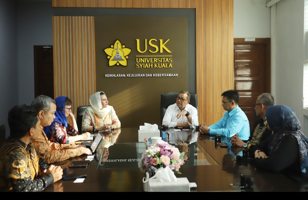 Pertemuan yang berlangsung di Ruang Mini Rektor USK, Banda Aceh, Kamis (23 April 2026), turut melibatkan Atsiri Research Center sebagai pusat unggulan pengembangan minyak atsiri di Aceh.