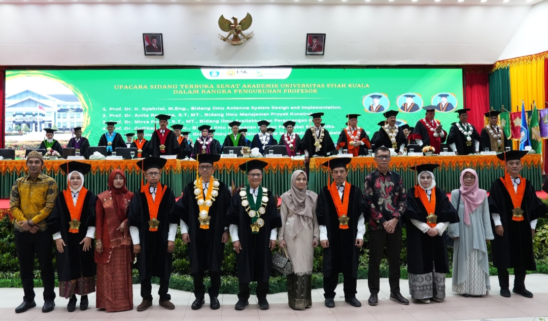 Rektor USK, Mirza Tabrani, menyampaikan apresiasi atas capaian tersebut. Ia menegaskan bahwa pengukuhan profesor bukan hanya simbol prestasi akademik tertinggi, tetapi juga tonggak penting dalam menghadirkan kontribusi nyata bagi pembangunan berbasis ilmu pengetahuan.